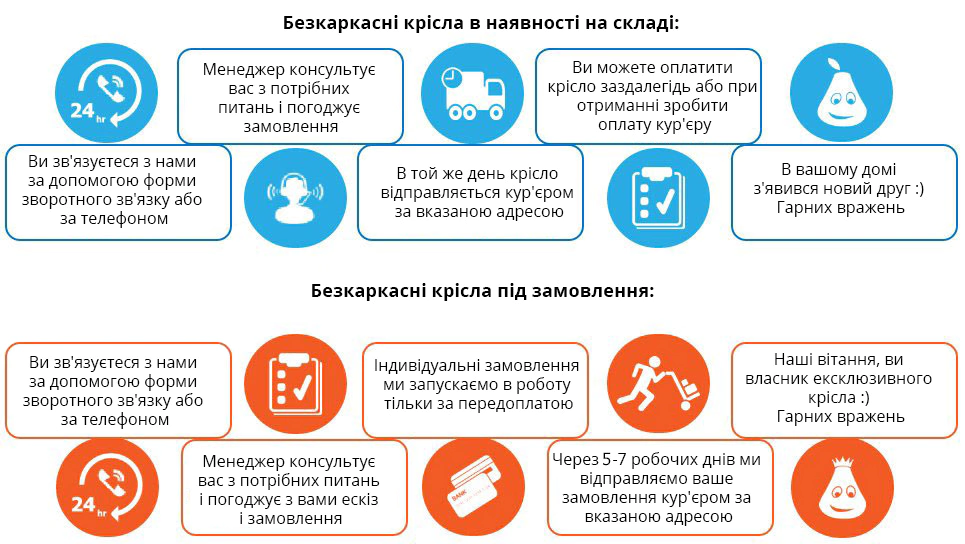 3. Якщо з якоїсь причини стілець-мішок не підійшов клієнту, є можливість його обміняти протягом одного місяця;