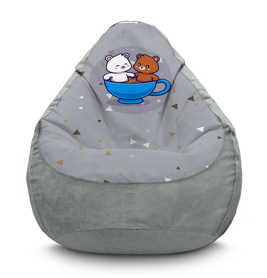 The beanbag chair "Bears in a cup + confetti." is a bright and interesting chair that your child will definitely like. In the chair "Bears in a cup + confetti." Your child will be comfortable watching cartoons, reading books, playing with favorite toys or just fooling around.The pear chair is available in sizes L, XL, XXL, XXXL. The shape and filling of the chairs are specially designed to completely relieve the tension of the spine and shoulder girdle when sitting down. The versatility of the shape of the bean bag chair allows you to sit in it with different sitting heights from 5 to 45 cm, and with absolutely any comfortable back tilt.The bean bag chair is made of high-quality furniture flock. Flock fabric is ideal for home armchairs.