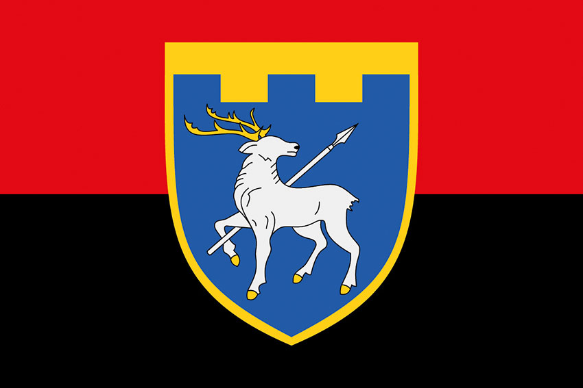 The flag of the 123rd separate territorial defense brigade of the Armed Forces of Ukraine is red and black