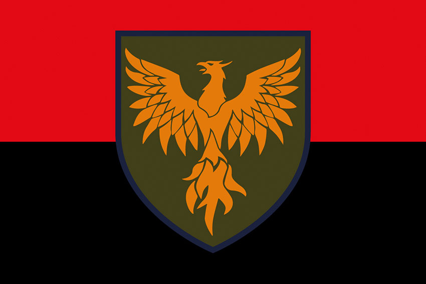 The flag of the 146th separate repair and restoration regiment of the Armed Forces of Ukraine is red and black