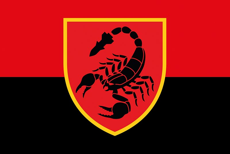 Прапор ЗСУ 19 ОРБр (окремої ракетної бригади) «Свята Варвара» червоно-чорний