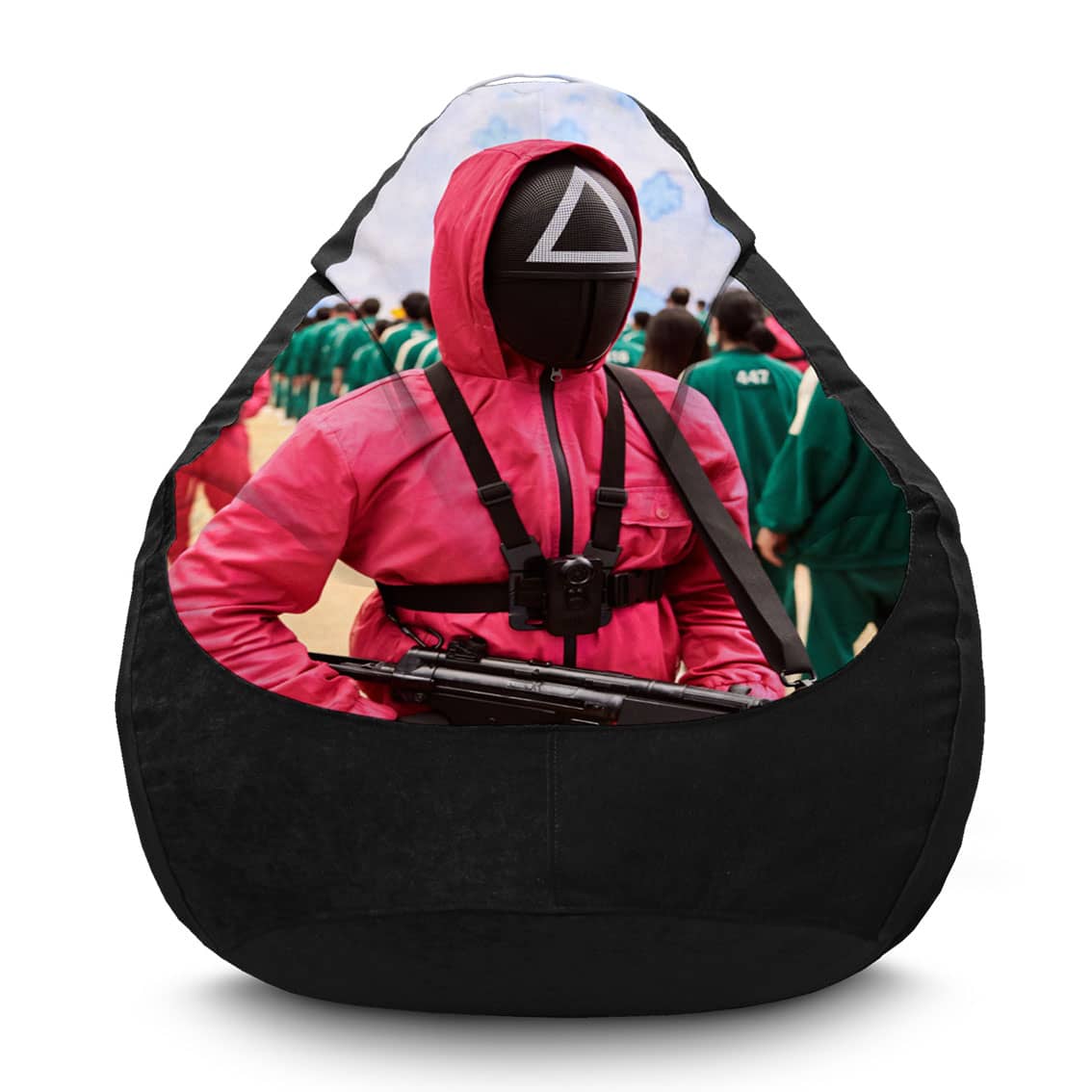 Крісло мішок “Squide Game. Triangle.” ідеально підходить для будинку, офісу або кафе. В кріслі груші “Squide Game. Triangle.” зручно дивитися кіно онлайн, грати, читати книги, відпочивати з друзями.Крісло груша виготовляється в розмірах L, XL, XXL, XXXL. Форма і наповнення крісел спеціально розроблені таким чином щоб при посадці повністю розвантажити напругу хребта і плечового пояса. Універсальність форми крісла мішка дозволяє сидіти в ньому з різною висотою посадки від 5 до 45 см, і з абсолютно будь-яким зручним для Вас нахилом спини.Крісло мішок пошито з якісного меблевого флока. Тканина флок ідеально підходить для домашніх крісел.