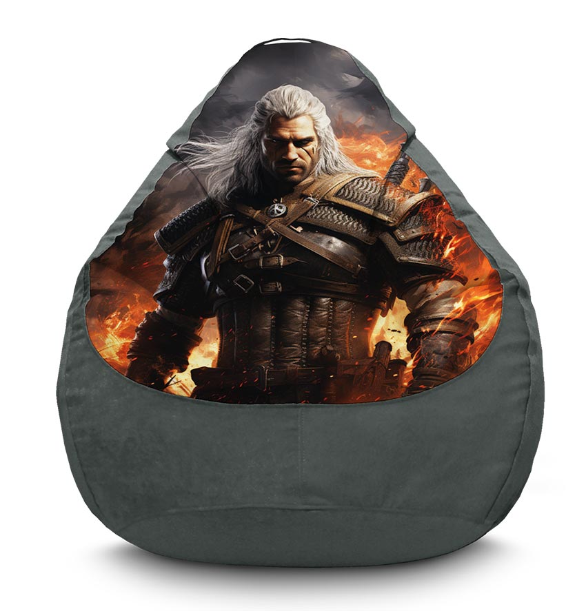 Крісло мішок “Відьмак у вогні” ідеально підходить для будинку, офісу або кафе. В кріслі груші “Відьмак у вогні” зручно дивитися кіно онлайн, грати, читати книги, відпочивати з друзями.Крісло груша виготовляється в розмірах L, XL, XXL, XXXL. Форма і наповнення крісел спеціально розроблені таким чином щоб при посадці повністю розвантажити напругу хребта і плечового пояса. Універсальність форми крісла мішка дозволяє сидіти в ньому з різною висотою посадки від 5 до 45 см, і з абсолютно будь-яким зручним для Вас нахилом спини.Крісло мішок пошито з якісного меблевого флока. Тканина флок ідеально підходить для домашніх крісел.