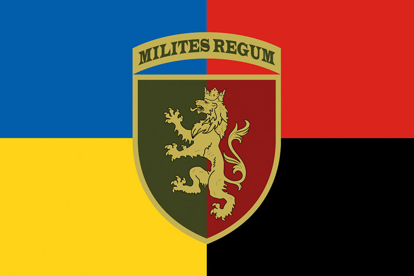 Прапор 24 ОМБр імені короля Данила ЗСУ жовто-синій червоно-чорний