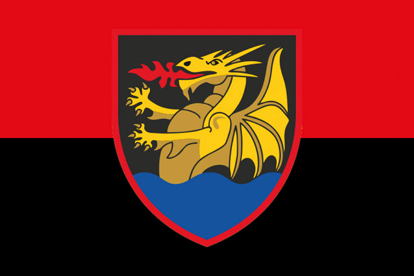 Прапор 32 реактивного артилерійського полку (32 РеАП) ВМС ЗСУ червоно-чорний