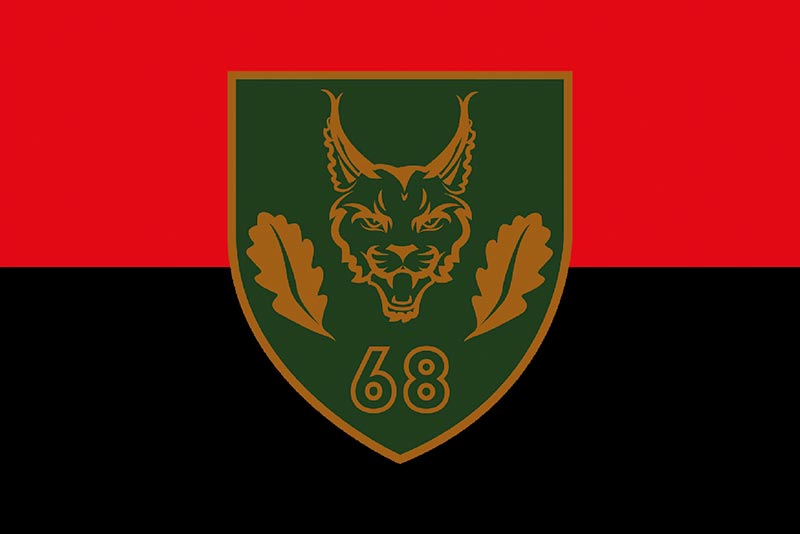 Прапор 68 ОЄБр імені Олекси Довбуша ЗСУ Варіант 2 червоно-чорний