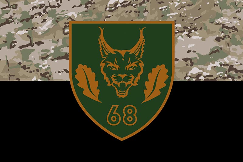 Прапор 68 ОЄБр імені Олекси Довбуша ЗСУ Варіант 2 камуфляж-чорний
