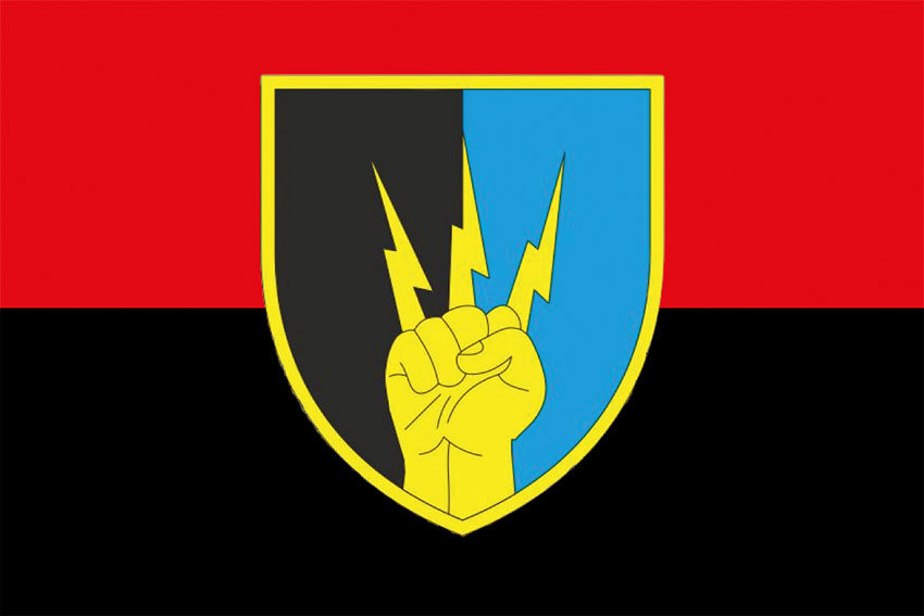 Прапор 76 ОПЗ та РТЗ (окремого полку зв’язку та радіотехнічного забезпечення) імені В’ячеслава Чорновола ЗСУ червоно-чорний