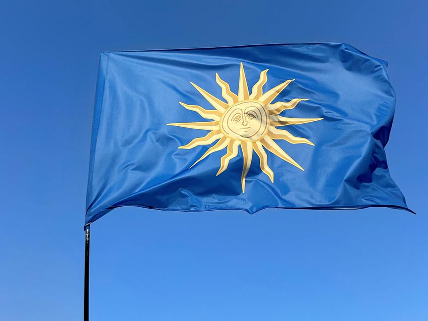 | Розмір прапора | 1.05×0.7, 1.35×0.9, 1.5×1, 2.1×1.35, 2.3×1.5 |