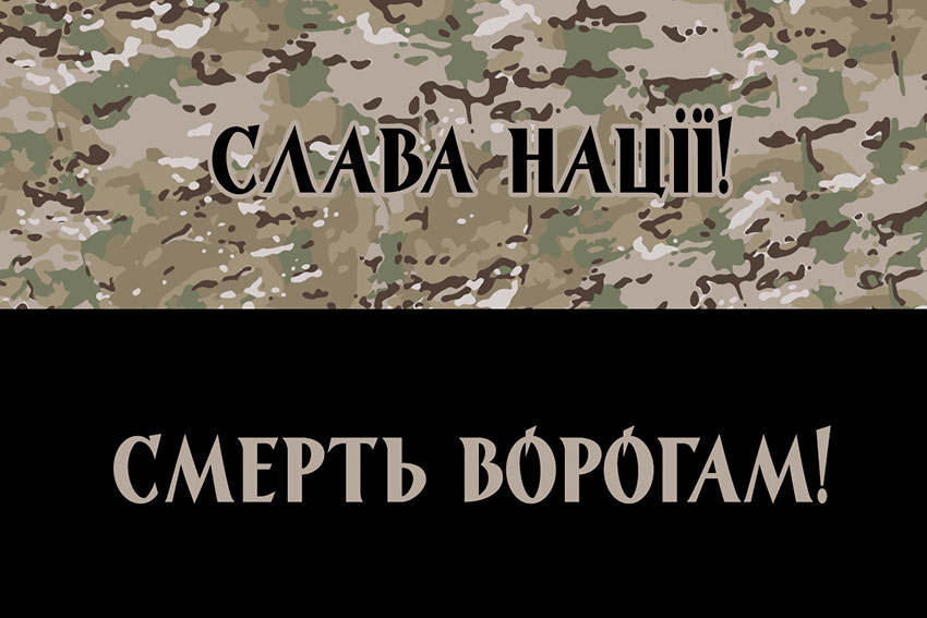 Прапор «Слава Нації! Смерть ворогам!» камуфляж-чорний