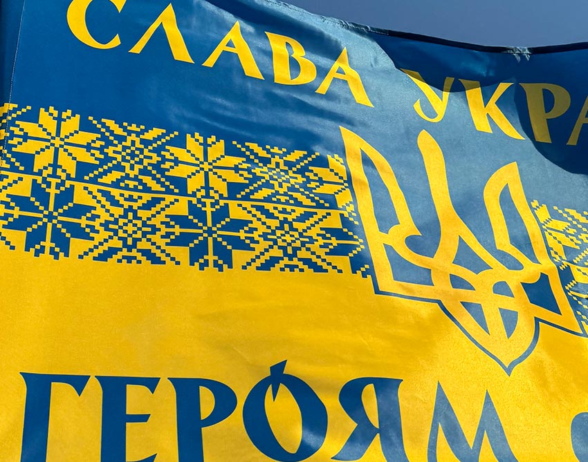 Прапор України з гербом патріотичний «Слава Україні! Героям слава!»