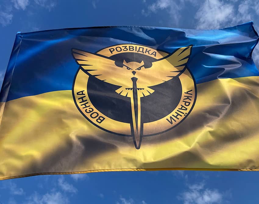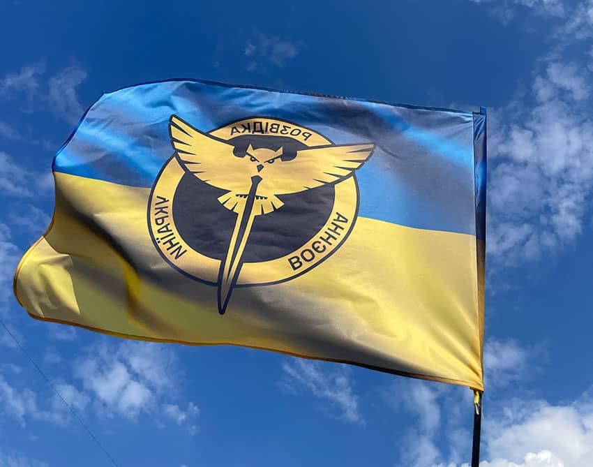 Прапор Воєнної розвідки України 3D жовто-блакитний