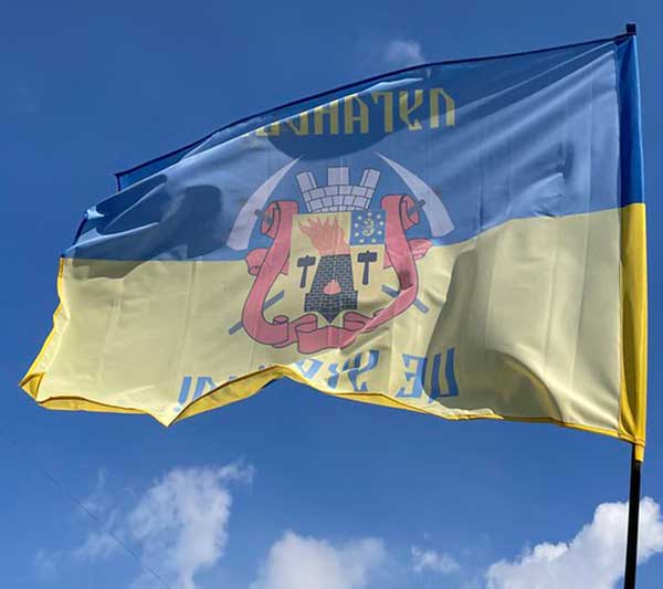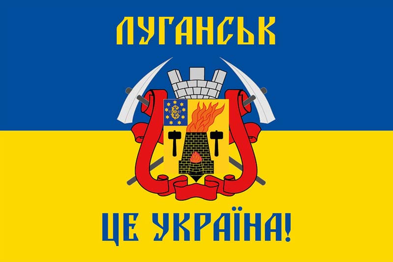 Прапор з гербом Луганська «Луганськ — це Україна!», синьо-жовтий
