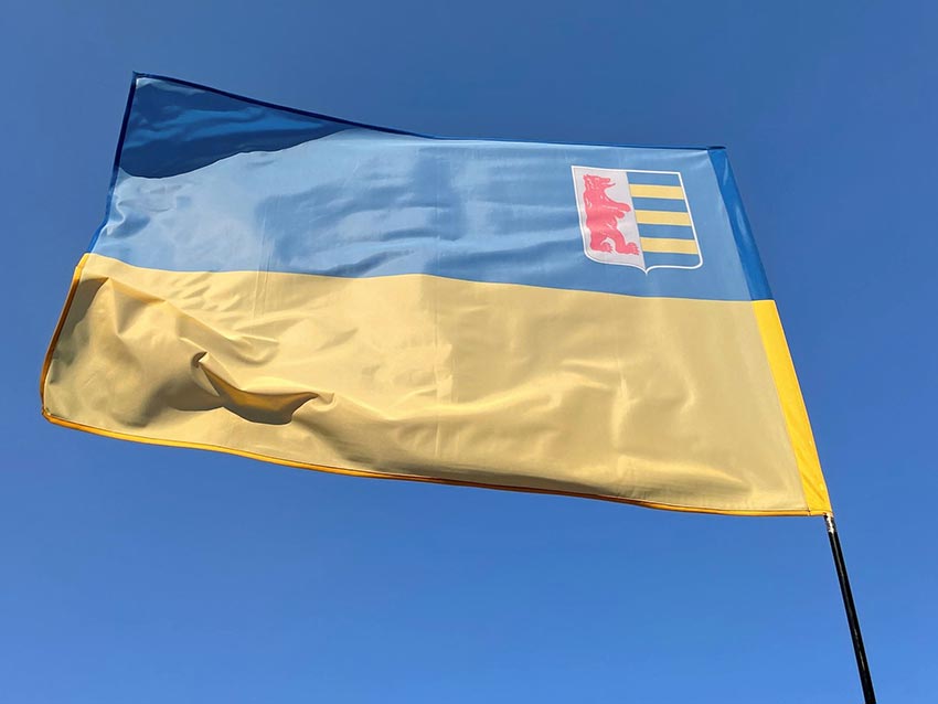 | Розмір прапора | 1.05×0.7, 1.35×0.9, 1.5×1, 2.1×1.35, 2.3×1.5 |