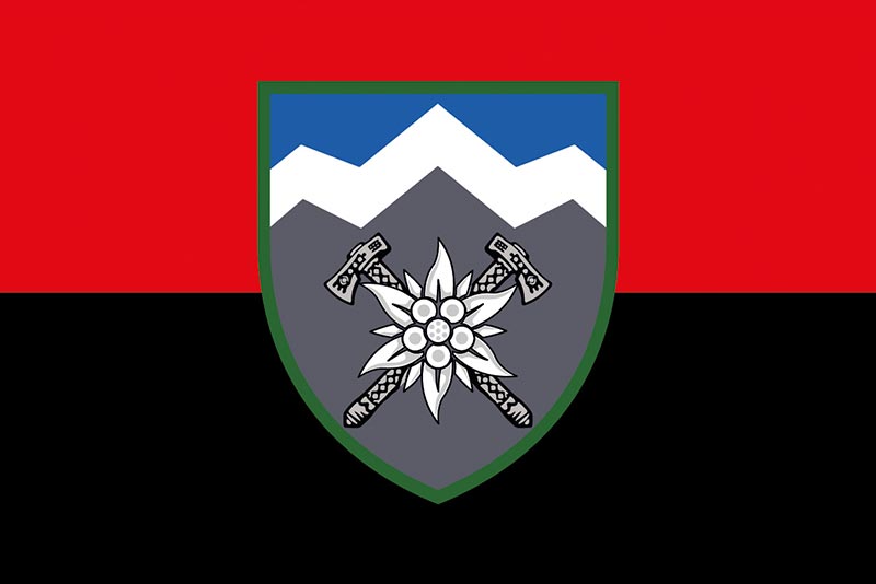 Прапор ЗСУ 10 ОГШБр (окрема гірсько-штурмова бригада) «Едельвейс» червоно-чорний