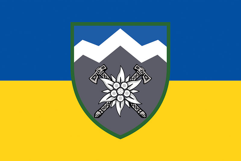 Прапор ЗСУ 10 ОГШБр (окрема гірсько-штурмова бригада) «Едельвейс» синьо-жовтий