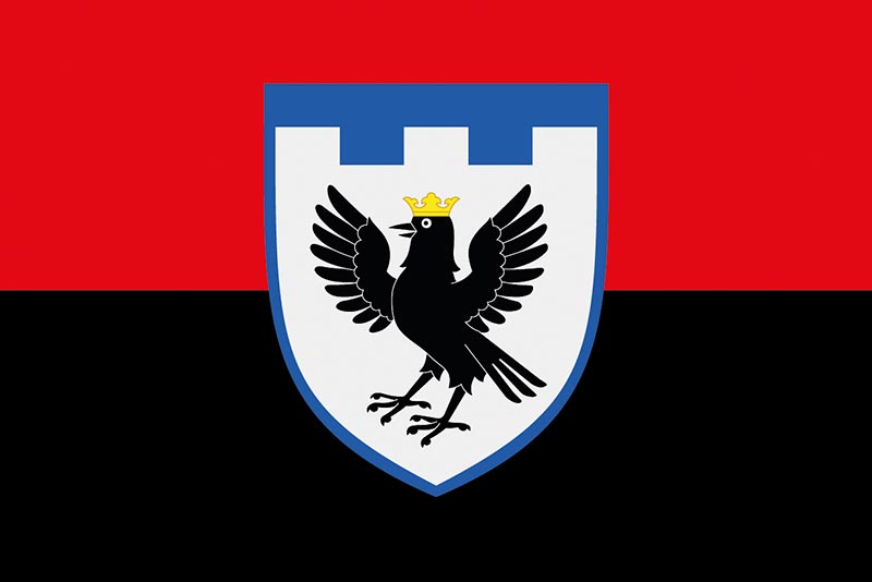 Прапор ЗСУ 102 ОБрТрО (окрема бригада територіальної оборони) імені Дмитра Вітовського червоно-чорний