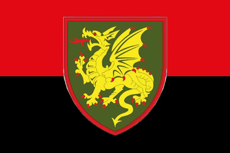 Прапор ЗСУ 107 Кременчуцької РеАБр (реактивної артилерійської бригади) червоно-чорний