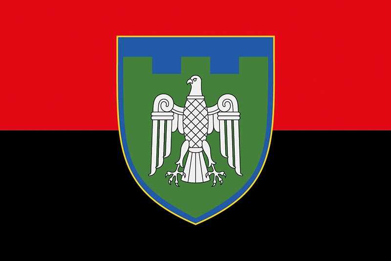Прапор ЗСУ 107 ОБрТрО (окрема бригада територіальної оборони) червоно-чорний