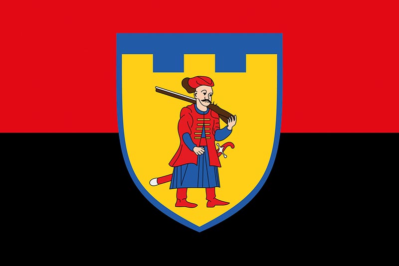 Прапор ЗСУ 110 ОБрТрО (окрема бригада територіальної оборони) червоно-чорний