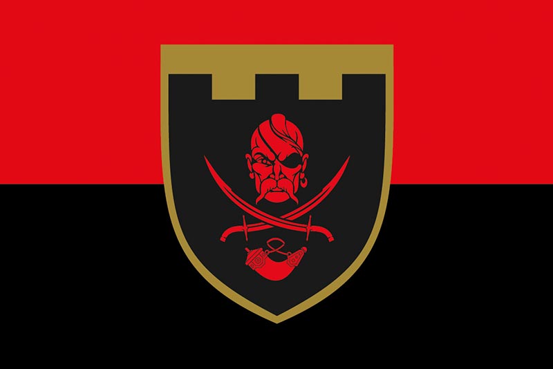 Прапор ЗСУ 129 ОБрТрО (окрема бригада територіальної оборони) червоно-чорний