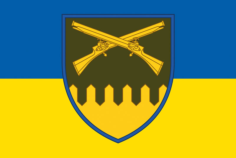 Прапор ЗСУ 92 ОМБр імені кошового отамана Івана Сірка синьо-жовтий