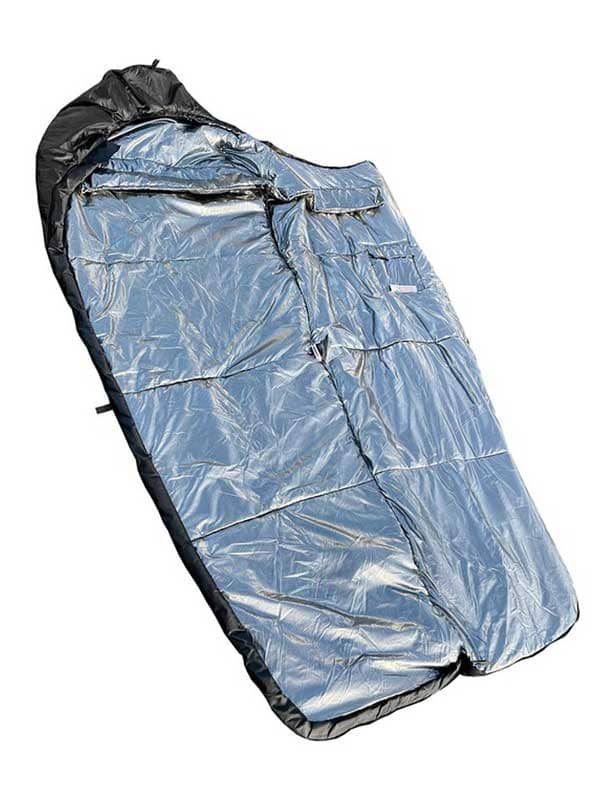 Спальний мішок комплектується якісною блискавкою українського виробника та двома бігунками, що дозволяє відкривати спальний мішок окремо вгорі та в ногах. Блискавка захищена додатковим внутрішнім бортиком, який захищає від продування крізь блискавку.