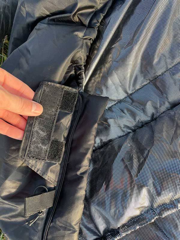Спальний мішок має комір на застібці, що дозволяє максимально зберегти тепло нижньої частини тіла.