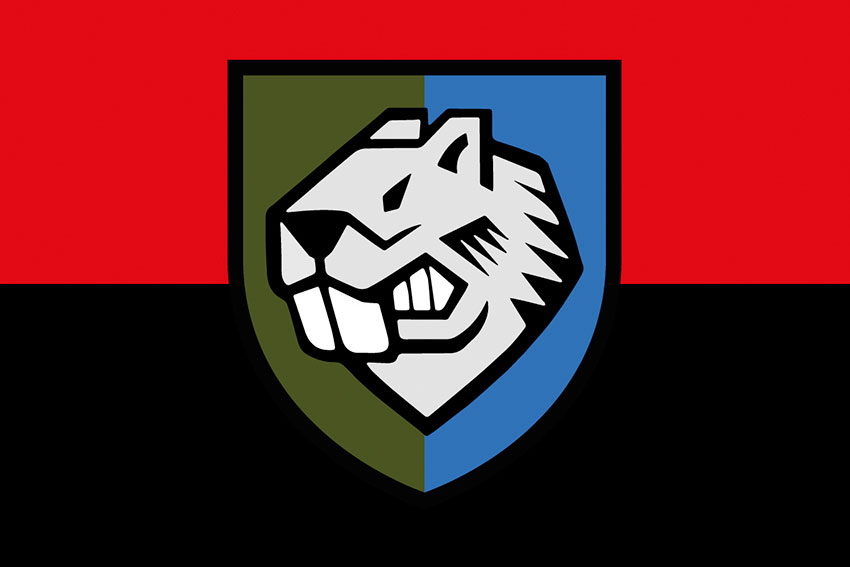 Флаг 808 понтонно-мостового полка (808 ПоМП) ВСУ красно-черный