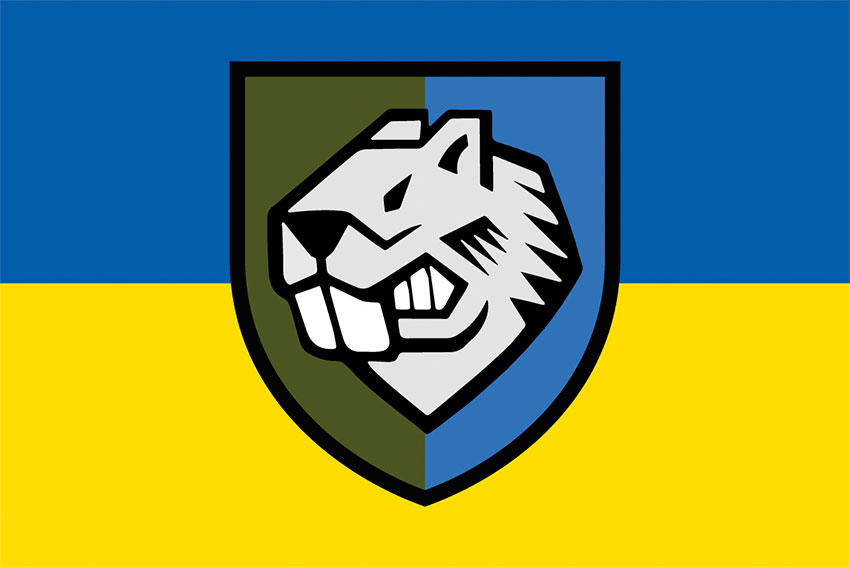 Флаг 808 понтонно-мостового полка (808 ПоМП) ВСУ сине-желтый