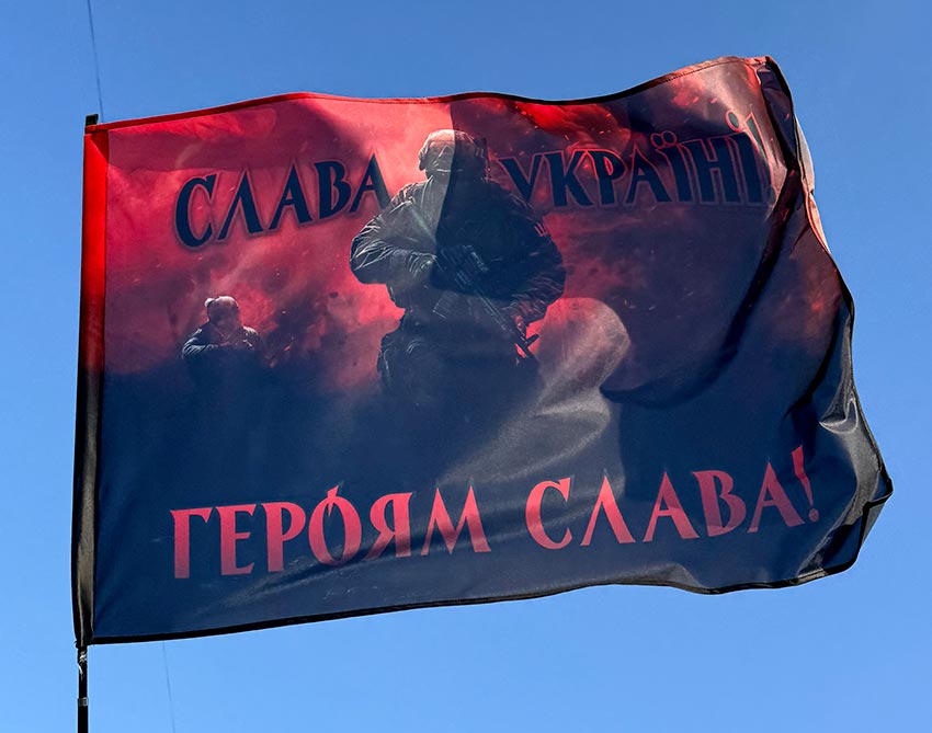 Флаг "Слава Украине! Героям слава!" красный рассвет