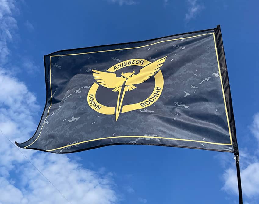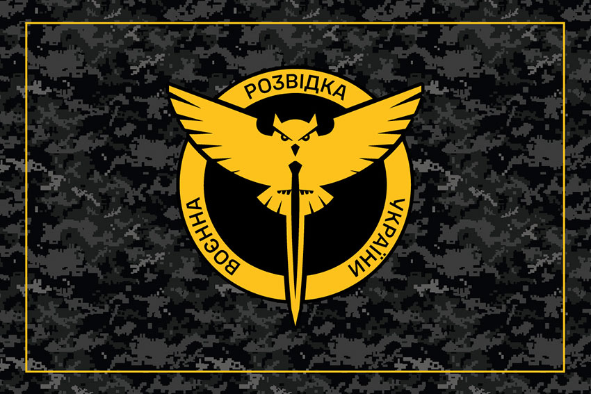 Прапор Воєнної розвідки України камуфляж з рамкою