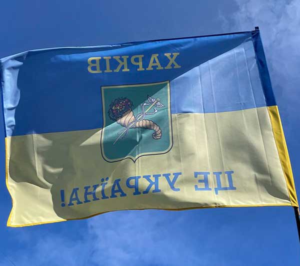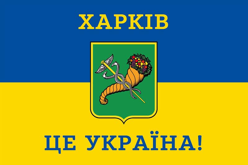 Прапор з гербом Харкова «Харків — це Україна!», синьо-жовтий